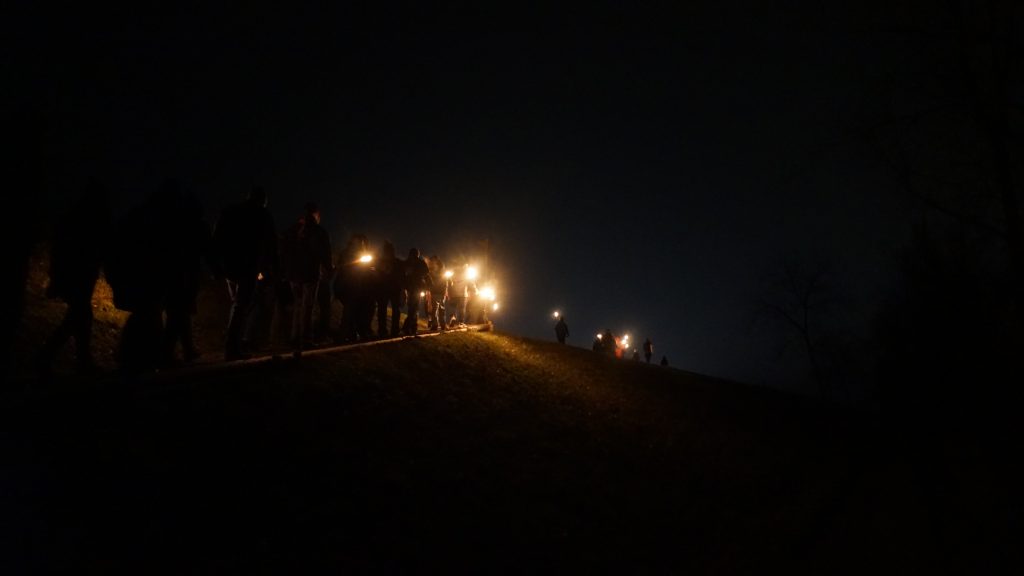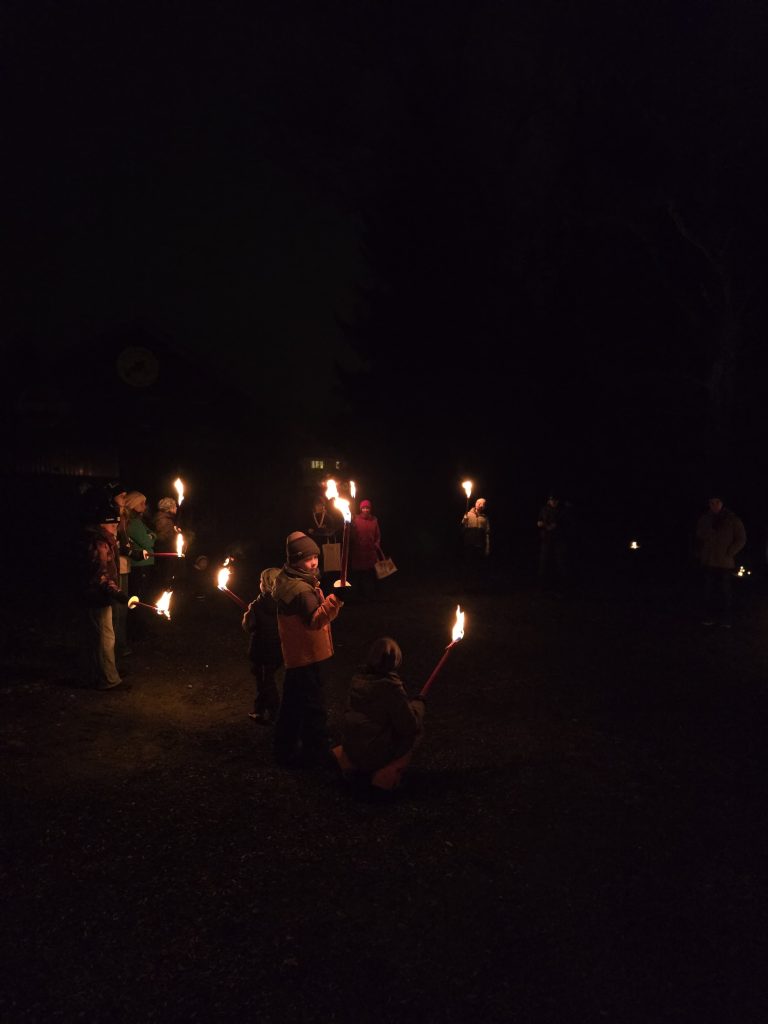 Traditionen soll man bekanntlich pflegen. Deshalb beendete die Abteilung auch dieses Jahr wieder mit der Waldweihnacht. Mehrere Dutzend Mitglieder, Eltern und Geschwister waren der Einladung gefolgt und bildeten am Samstagabend einen Fackelzug entlang des Binnenkanals und Rheindamms. Ziel war wie üblich die Arena in der Spetzau, wo alle gemeinsam den Abend bei Liedern und vorweihnachtlichen Köstlichkeiten ausklingen liessen.
